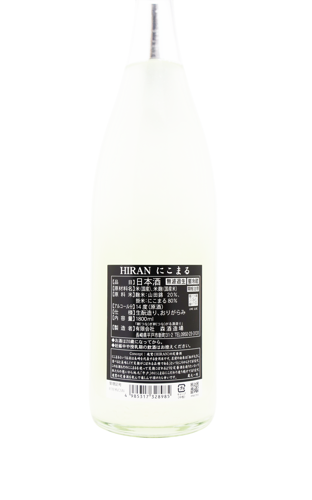 飛鸞 HIRAN ひらん にこまる おりがらみ無濾過生原酒 1.8L (冷蔵) [日本酒]